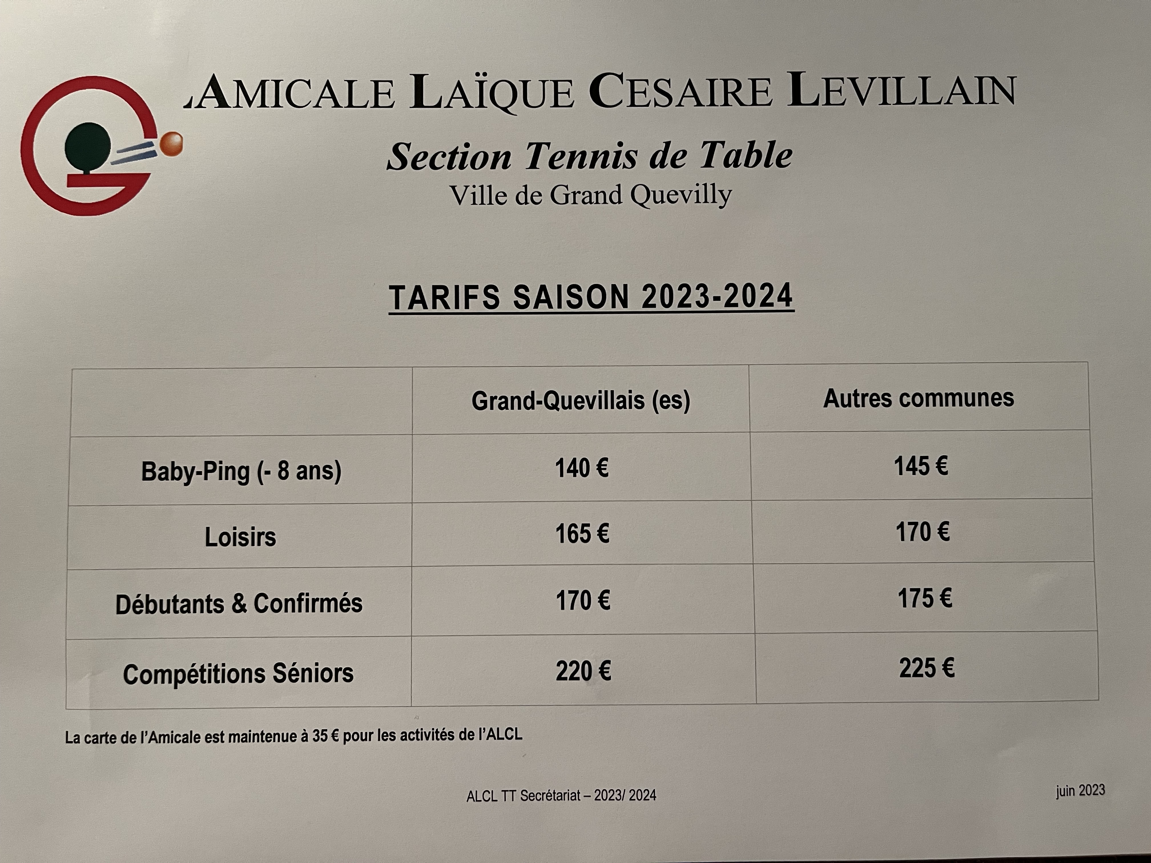 Tarifs 2023/2024